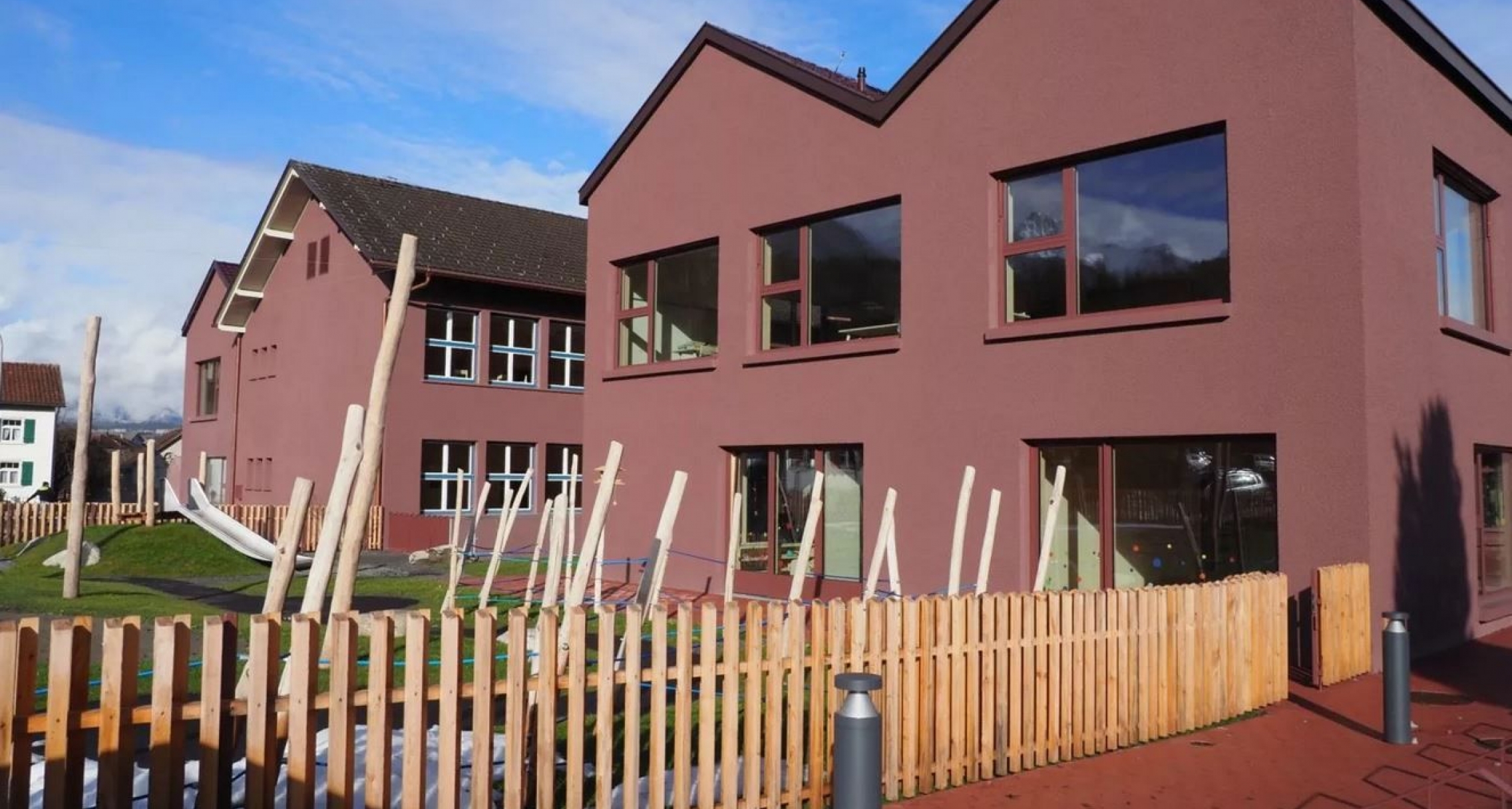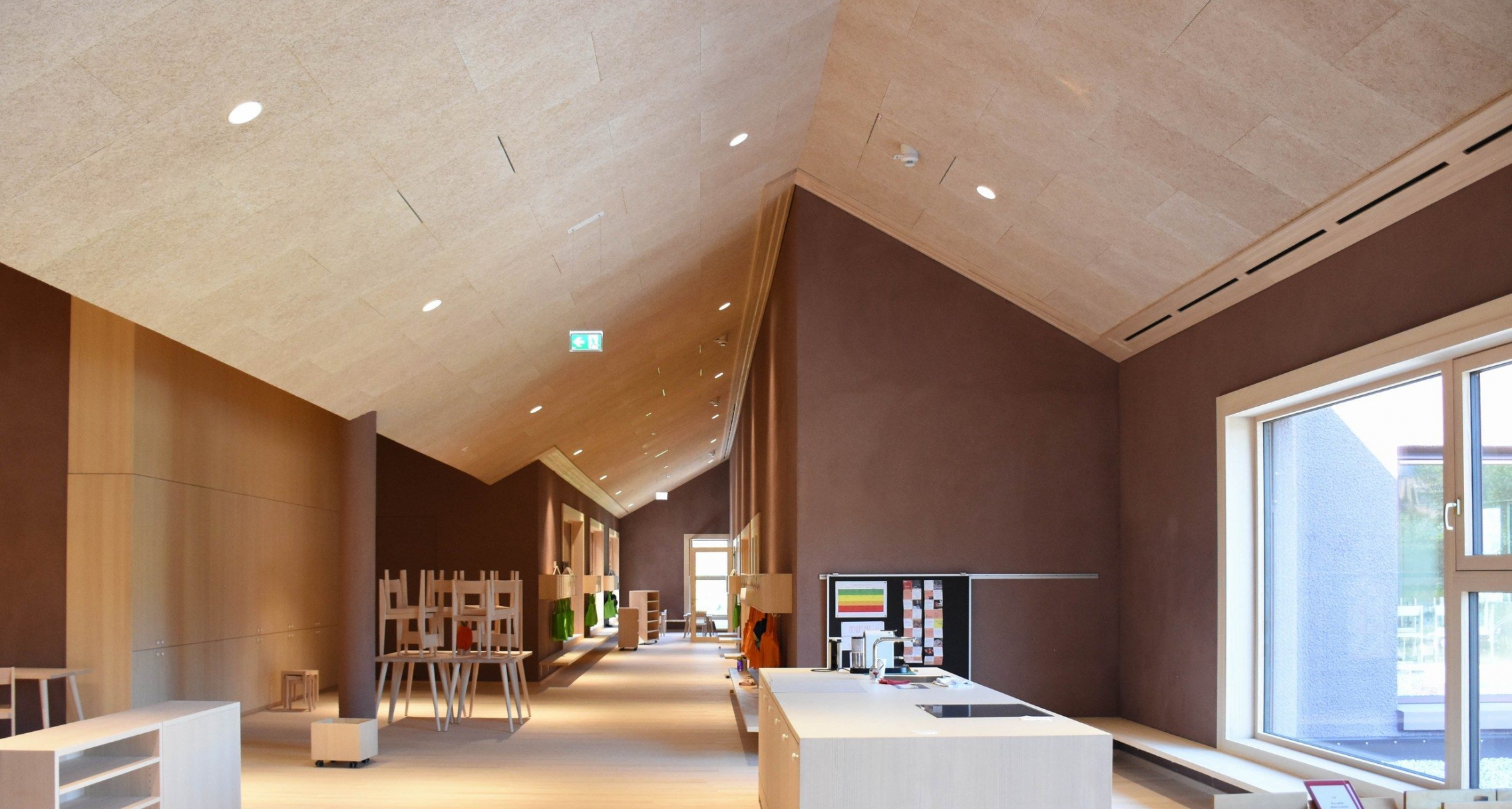 Ausgangslage bildet das bestehende Schulgebäude, welches durch seine Z-Form geprägt ist. Um den innovativen pädagogischen Anforderungen zu entsprechen, wird das Bestandsgebäude ergänzt. Dabei wird ein zentraler Verbindungkörper mit zwei Flügeln geschaffen, denen vier Klassenverbände zugeschrieben sind. Die Flügel im Bereich des Neubaus enthalten die Kinderbetreuung und den Kindergarten. Zwei zum Garten hin offene Innenhöfe ermöglichen eine Weiterführung der außenliegenden Spielwiesen und Freiflächen. Im Obergeschoss des Neubaus werden zusätzlich Sozialräume sowie die Verwaltung untergebracht. Durch die vorgeschlagene Gebäudegeometrie wird es möglich jedem Klassenverband und jeder Gruppe separaten Freibereichen zuzuschreiben, welche dann je nach Bedarf vom Lehrpersonal in Lärm-, Ruhe- oder Kommunikationsbereiche definiert werden kann. Dies ermöglicht den Unterricht auch im Freien durchzuführen und damit eine flexible „Lernlandschaft“ zu schaffen. Die interne Organisation ist definiert durch die zentral durch das Gebäude verlaufende Bildungsachse, welche das kommunikative Herzstück des Bildungszentrums bildet. Die Bildungsachse schafft immer wiederkehrende Kommunikationsflächen, sogenannte „Marktplätze“.