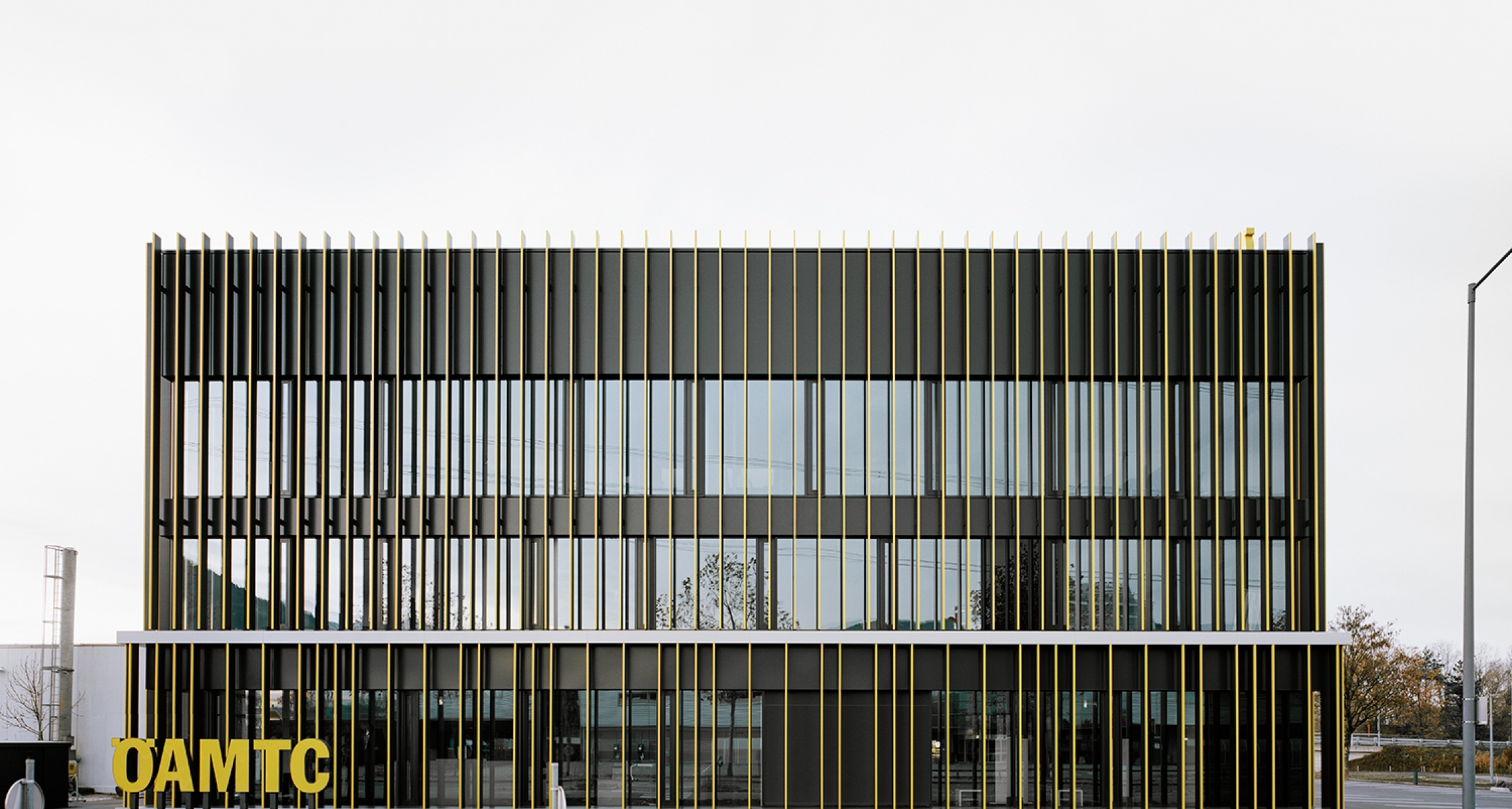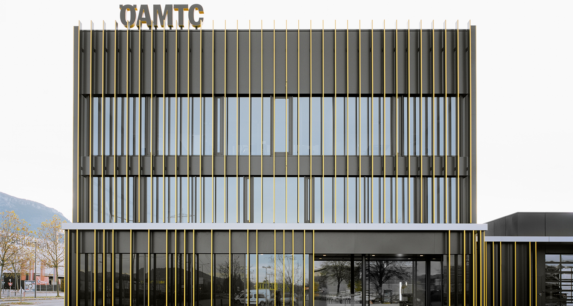Der ÖAMTC Stützpunkt, Dornbirn, braucht eine neue Identität. Der bestehende Bestandsbau wird radikal entkernt. Die thermische Hülle des Gebäudes wird von verglasten und opaken Bauteilen gebildet. Die geschlossenen Fassadenbereiche werden mit einer gedämmten Blechfassade verkleidet. Der thermischen Hülle vorgelagert sind zarte Vertikallamellen, welche starr befestigt sind. Diese prägen maßgeblich die neue Baukörpergestalt, nehmen aber gleichzeitig die Führungen für den außenliegenden Sonnenschutz auf und sorgen für eine optimale Windstabilität der Beschattungsanlage.